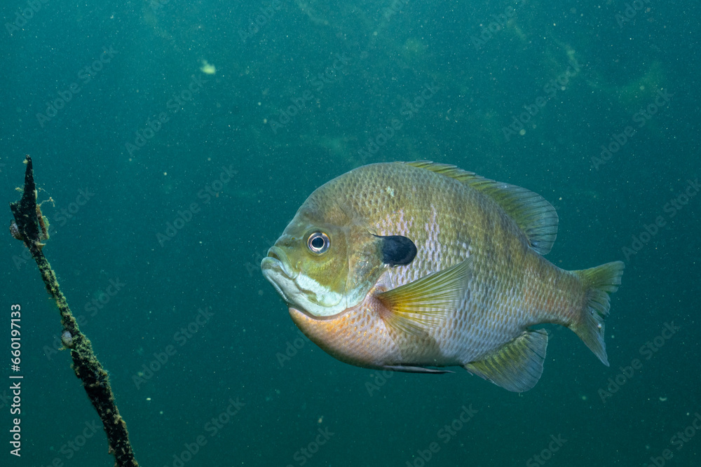 Bluegill in a blue lake