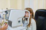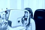 teen girl in ophthalmologist's office. computed tomography of the eye