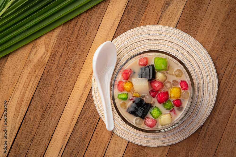 Water Chestnuts in Coconut Broth,Thai iced dessert,Tub Tim Krob.Top view