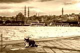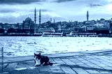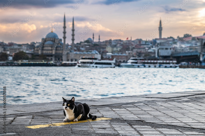 A cat on the Karakoy pier on the shores of the Golden Horn Bay in Istanbul. Love for cats is one of the symbols of Istanbul.