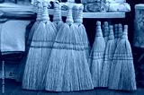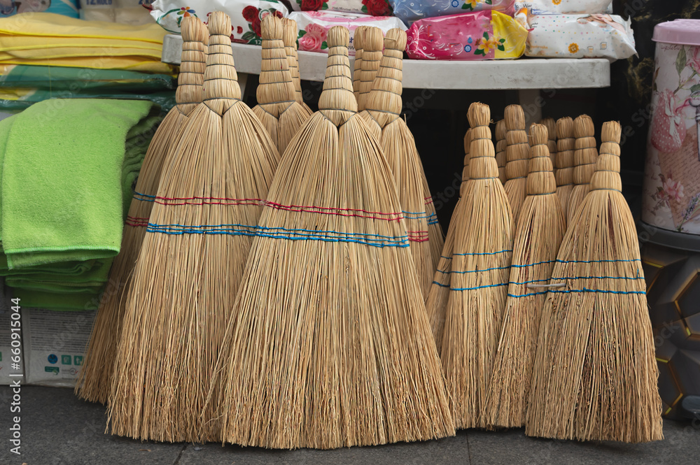 Brooms of various sizes are sold in a street shop in Istanbul.