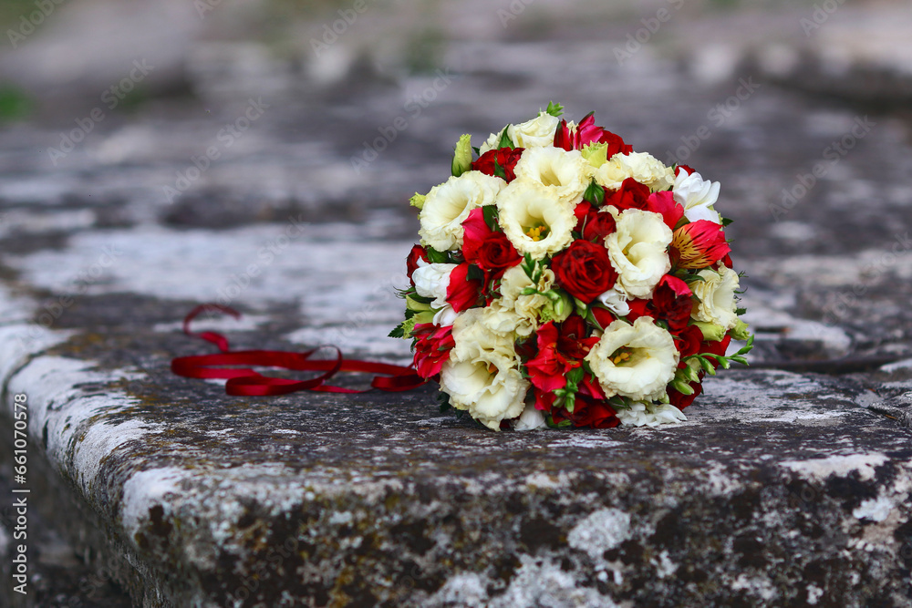 beautiful wedding bouquet on stone