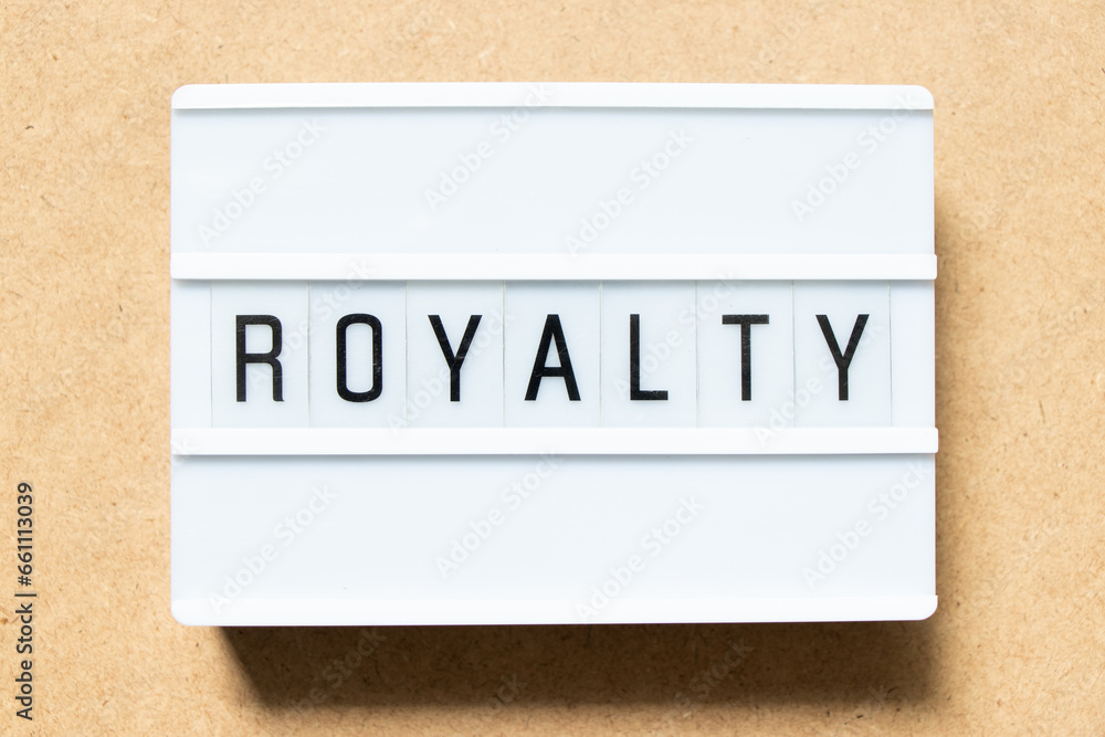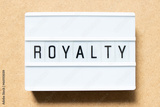 Lightbox with word royalty on wood background