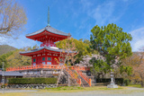 Kyoto, Japan - March 29 2023: Daikakuji Temple with Beautiful full bloom cherry blossom garden in spring time