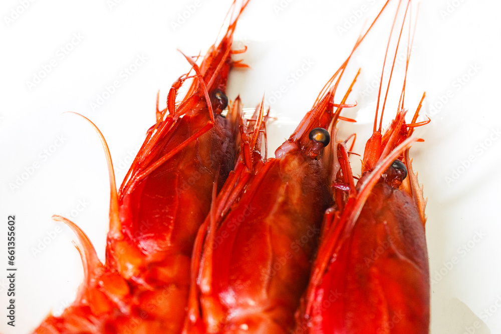 a wild Taiwanese vibrant red hokkai shrimp