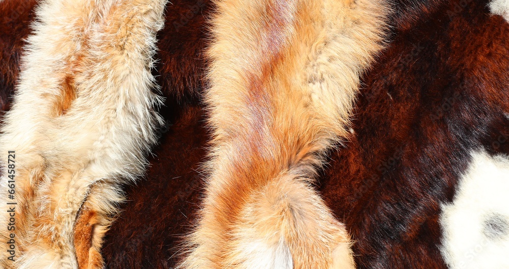animal fur background with two skinned fox stoles for sale in luxury fur shop