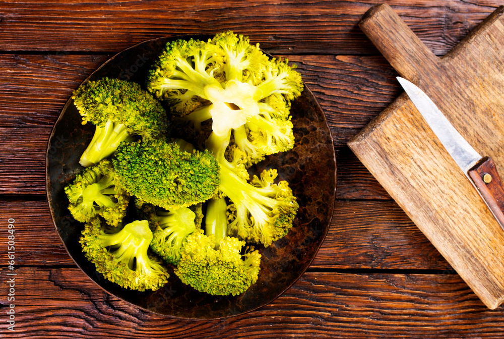Healthy Green Organic Raw Broccoli Florets Ready for Cooking