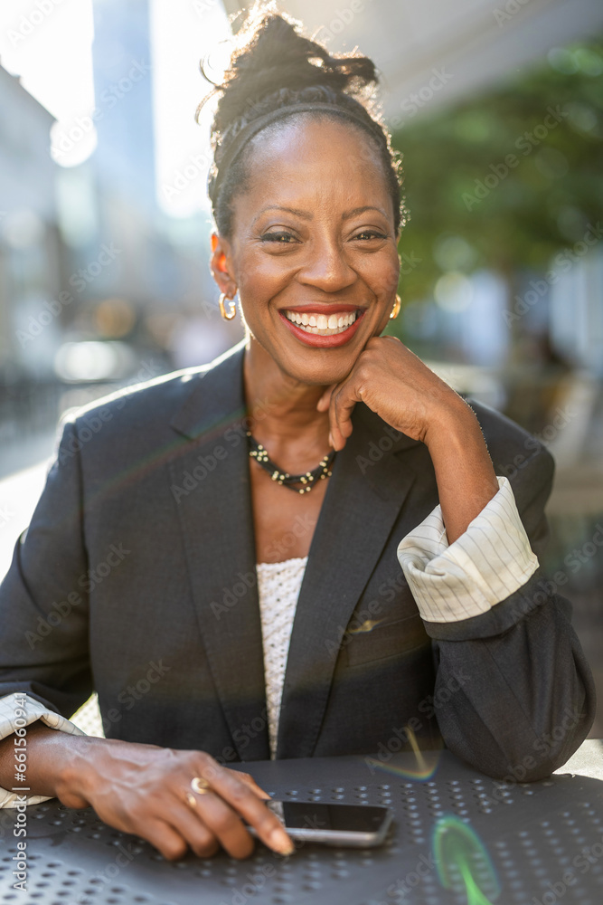 Portrait of a mature businesswoman sitting in an outdoor cafe