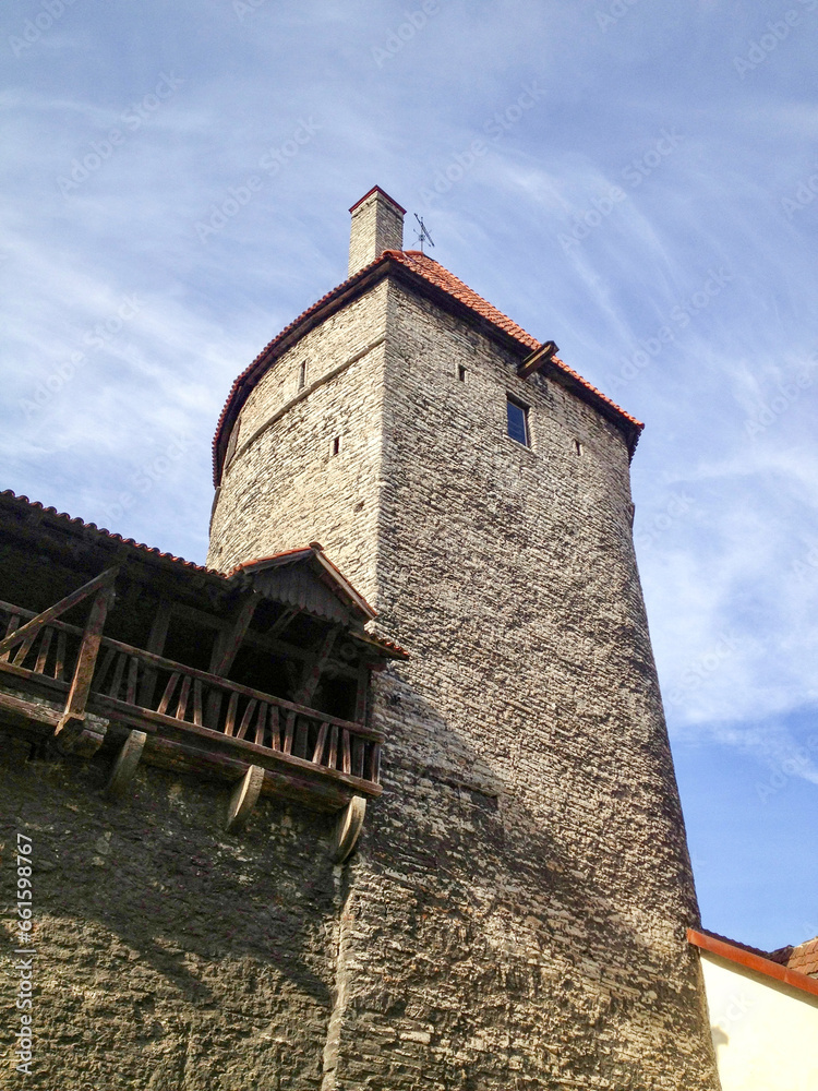 Low angle view of historical city wall in Tallinn, Estonia