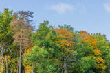 Beautiful view of autumn forest with colorful leaves on sunny day. Sweden.