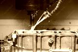 Repair of cylinder block engine blocks on CNC machine with a coolant.