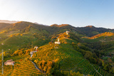 Aerial view of the hills in the Prosecco area of Valdobbiadene