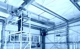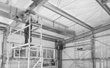 Professional HVAC Worker on a Scaffolding Installing Air Duct