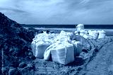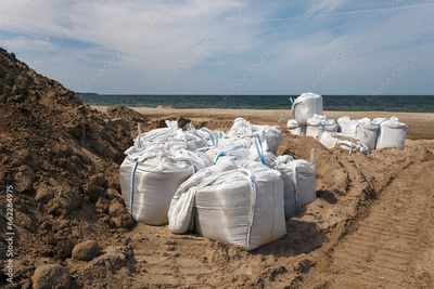 Large bags filled with sand to strengthen the shore