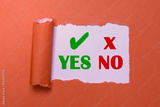 Yes or No Concept with Acceptance and Rejection Symbols. YES and NO Icons for Decision-Making. Voting Choices: Green YES and Red NO Symbols on Torn Red Paper.
