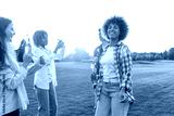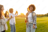 group of multiracial friends at party with bottles of beer dancing and having fun outdoors, group of people singing