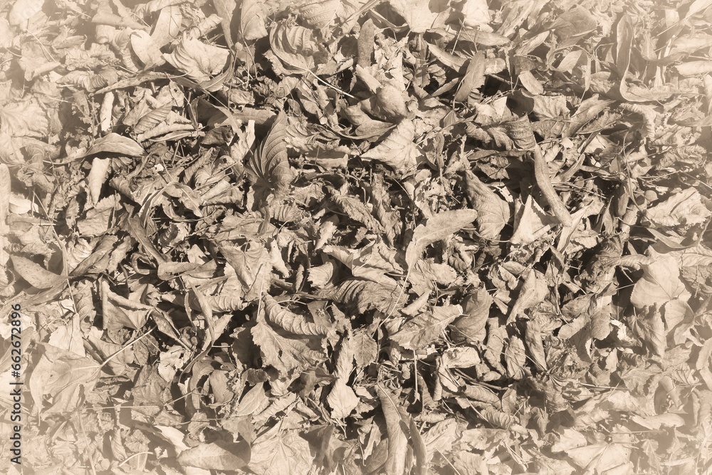 Dry leaves. Old postcard style - vintage paper sepia tone retro style.