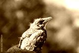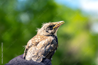 bird chick in hand on green background