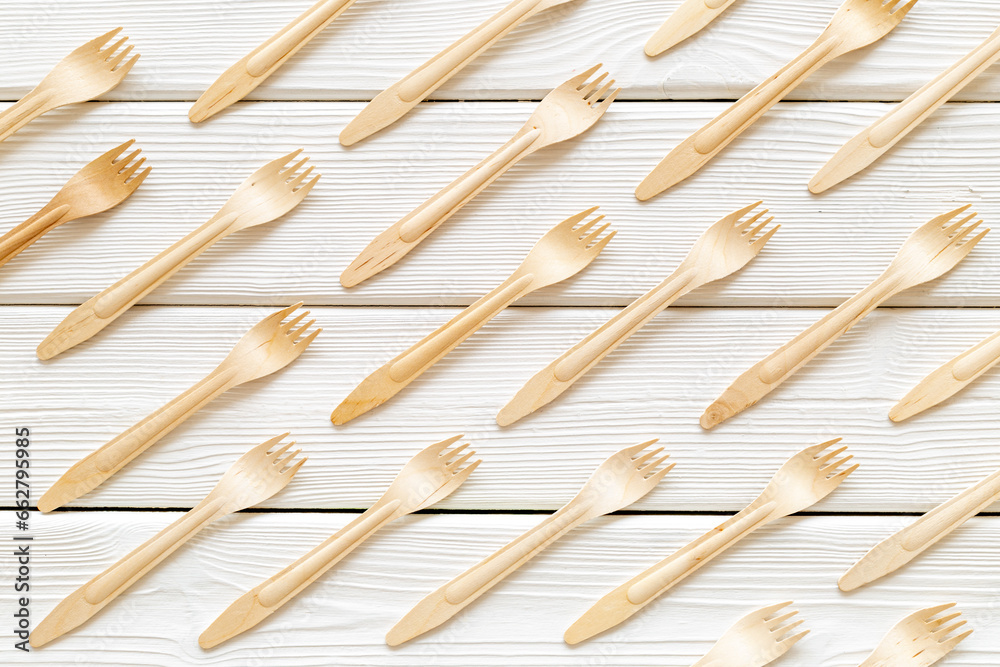 Pattern of wooden eco friendly disposable forks. Zero waste concept