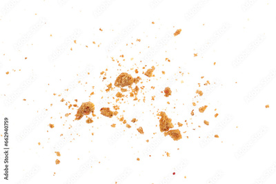 Pile cake crumbs, cookie flying isolated on white, clipping path