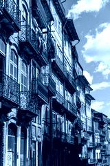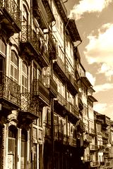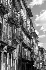 stare balkony w zabytkowych kamienicach w centrum Porto