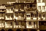 tradycyjne metalowe barierki na balkonach kolorowych kamienic w Porto, Portugalia, Europa