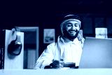 Arab businessman works diligently at a modern office desk, typing on his laptop. He browses the internet, communicates via email, and makes online payments with a credit or debit card.