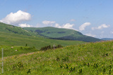 Walking through the subalpine meadows in the highlands during the flowering of plants and warm weather.