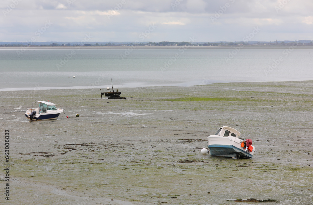 Cancale is a town in Brittany in France famous for low tides and boats beached on the beach
