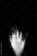 White powder explosion on black background. Colored cloud. Color dust explode. Paint Holi.