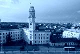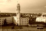 Aerial art nouveau historical an aerial view of the historic city of Oradea with its stunning art nouveau clock tower incity Oradea, Bihor, Romania