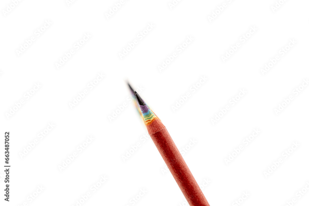 Set of Colored Pencils Made by Recycled Paper arranged on white background. Environmentally friendly stationary supplies