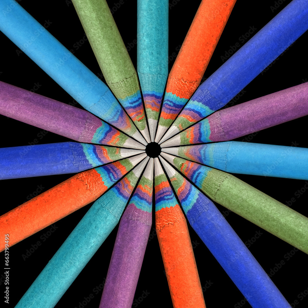 Colored Pencils Made by Recycled Paper arranged in a circle. Environmentally friendly stationary supplies