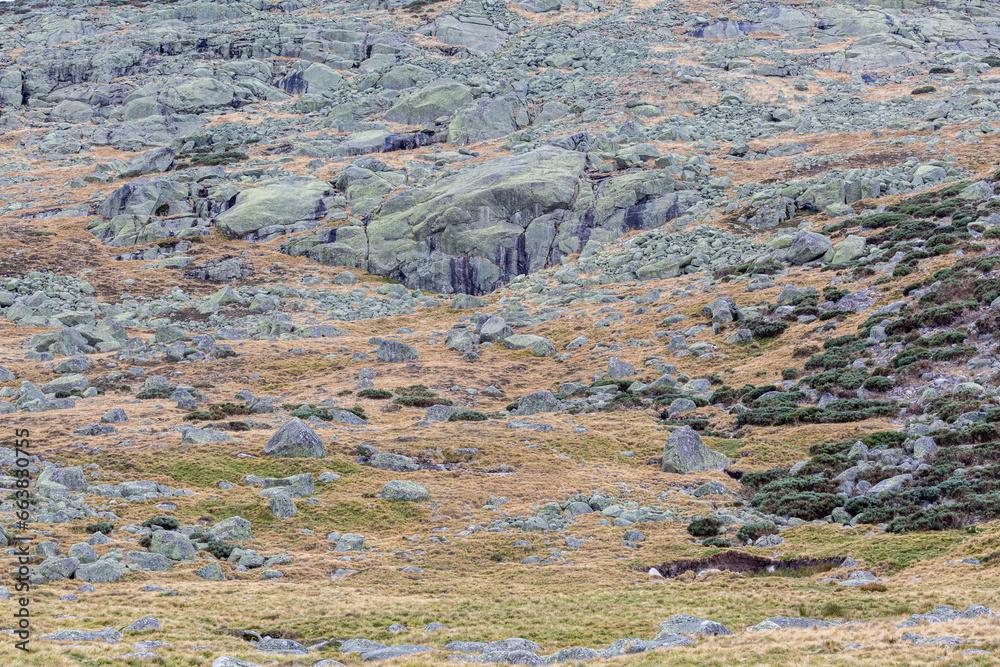 Rocky area with vegetation. Gredos Platform, Sierra de Gredos, Ávila, Spain.