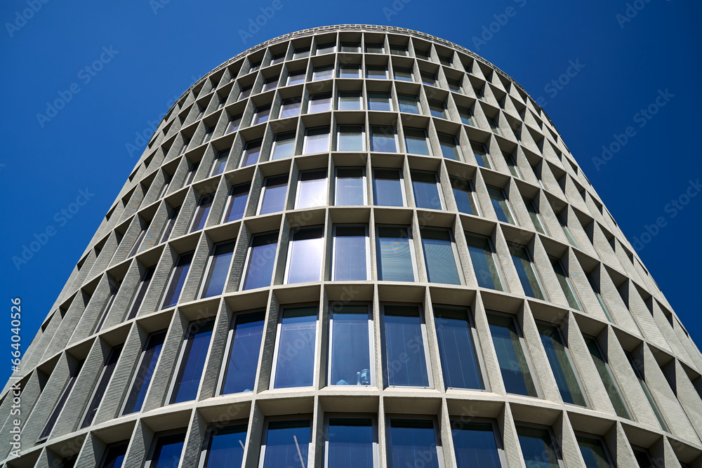 historic, modernist building in the shape of a cylinder in Poznan