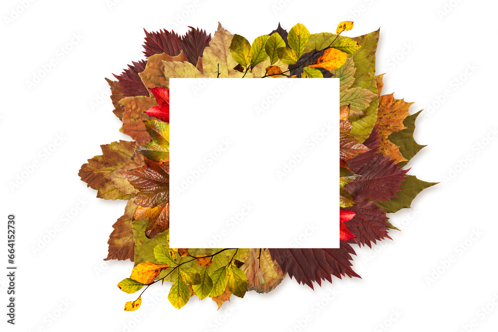 Digital png illustration of frame of autumn leaves on transparent background