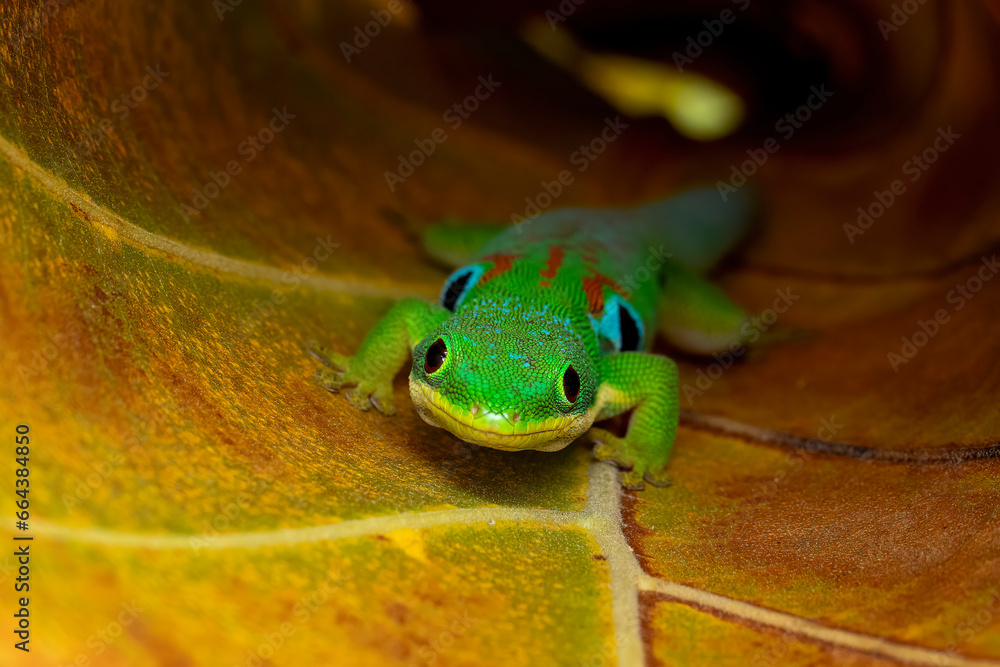 The Peacock Day Gecko (Phelsuma quadriocellata) is a brightly colored species found in Madagascar.