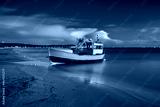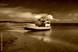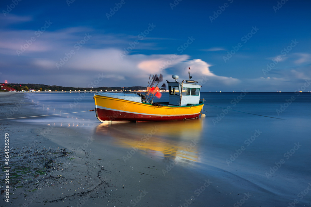 Fishing boats on the beach of Baltic Sea in Sopot at dusk, Poland