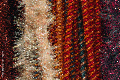 Multicolored festive garlands for New Year and Christmas decoration. Magic details, festive wallpaper