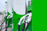 Electronic charging for electro car. EV car charging station in sity. Nature eco energy.