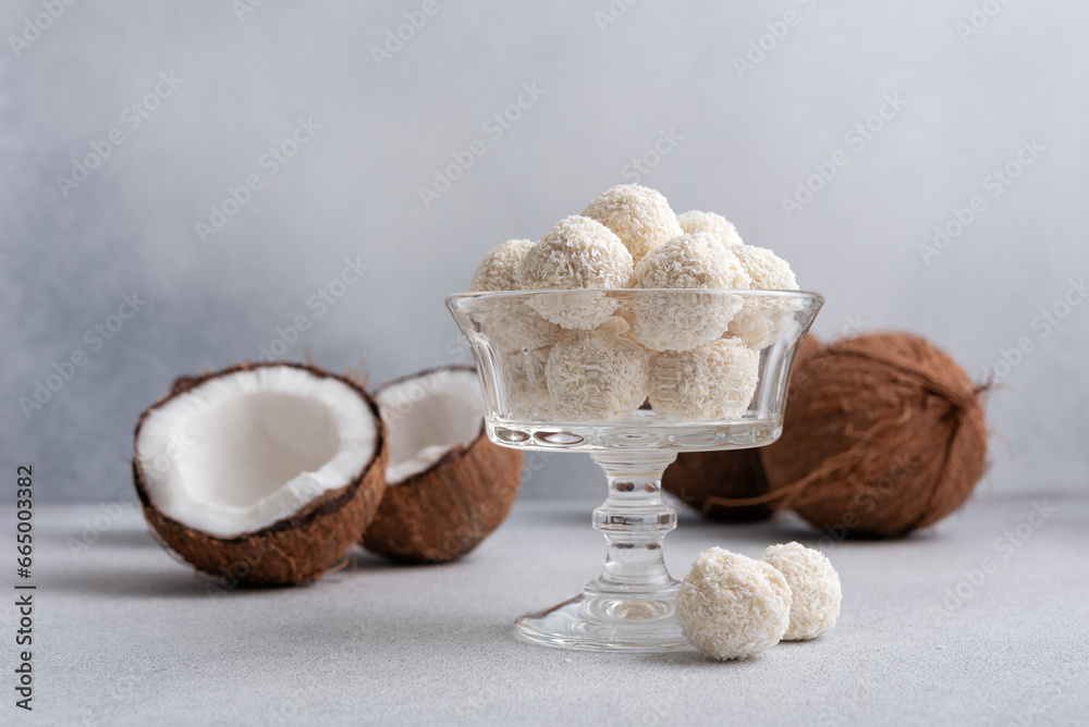 Coconut balls, raw and healthy sugar free candies