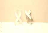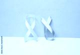 Pink breast cancer awareness ribbon and blue prostate cancer awareness ribbon on pastel background