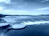 Low Water Dam with interlocking sheet piling, a rapid and fisihing beach on the Mississippi RIver below Chain of Rocks