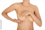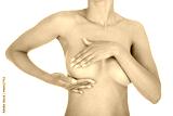 Adult woman examining her breast