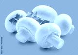 Mushroom group and parsley isolated on grey background