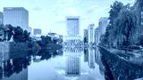 【日本・東京】祝田橋から有楽町方面を見た風景・夕暮れ時の東京オフィス街
