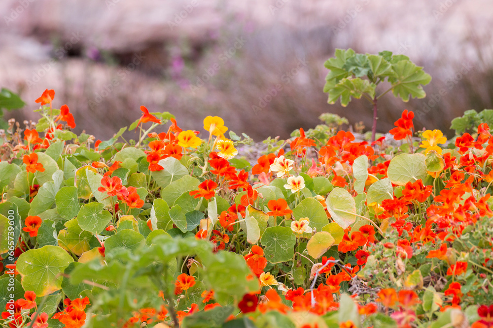 wild flowers on the rocky shore of Hermanus, Western Cape, South Africa