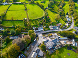 Aerial view of the heart of Exmoor - the village of Exford on the river Exe