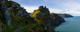 Aerial view of the Valley of Rocks, a dry valley that runs parallel to the coast in north Devon in Exmoor national park in England