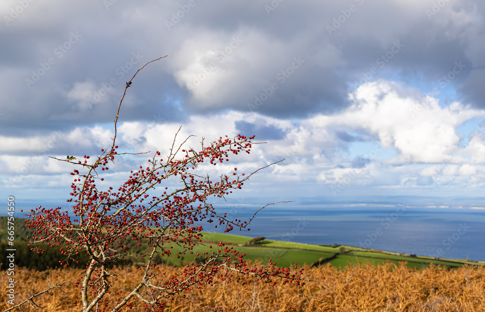 Aerial view of the Exmoor coast in the North Devon district in the county of Devon, England